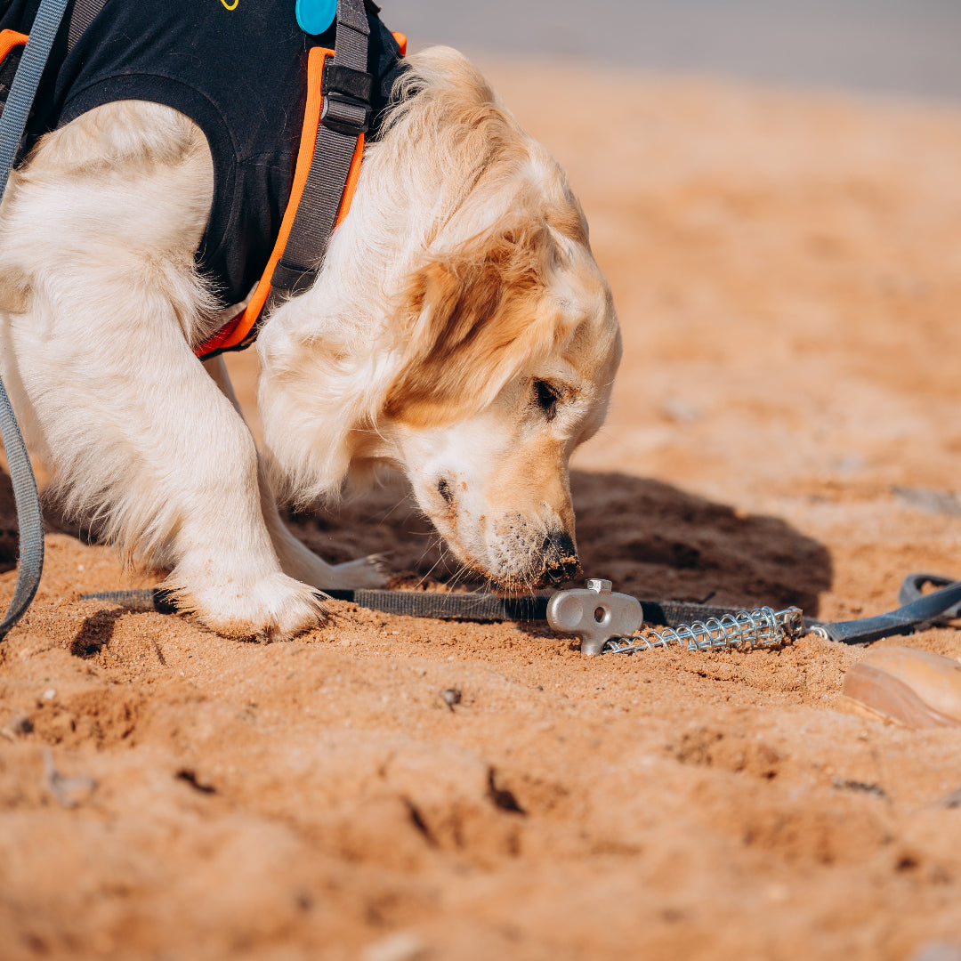 - Attach your leash to the shock absorber clip – done!